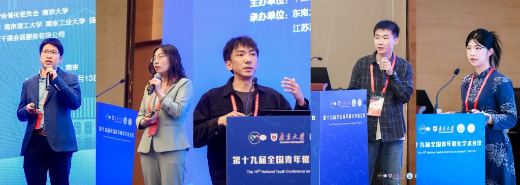 AM&CE团队由陈霄老师、罗靖洁老师、朱文军老师带队,博士研究生凌雨、刘会斌、李佳欣等一行赴南京参加会议。会上,课题组成员以口头报告及墙报的形式对课题组近期的研究进展进行展示宣传。经过组委会筛选,本次会议AM&CE团队共获选五个口头报告,分别为金属间化合物催化新材料、过渡金属催化剂选择性加氢己二腈制己二胺、高分散Ni基丙烯二聚催化剂的构筑及构效关系研究、镍铝金属间化合物催化材料制备及其加氢性能研究、导入全局调控因子IrrE以提高表达腈水合酶的基因工程菌的耐胁迫能力,并展出11份墙报。口头报告及墙报的研究内容新颖、重点突出,充分展示了课题组近期在铝化物催化剂、过渡金属催化剂及其在精细化学品合成、生物质转化、生物酶催化等领域取得的研究成果,与会期间吸引了诸多研究学者的关注及有效交流。