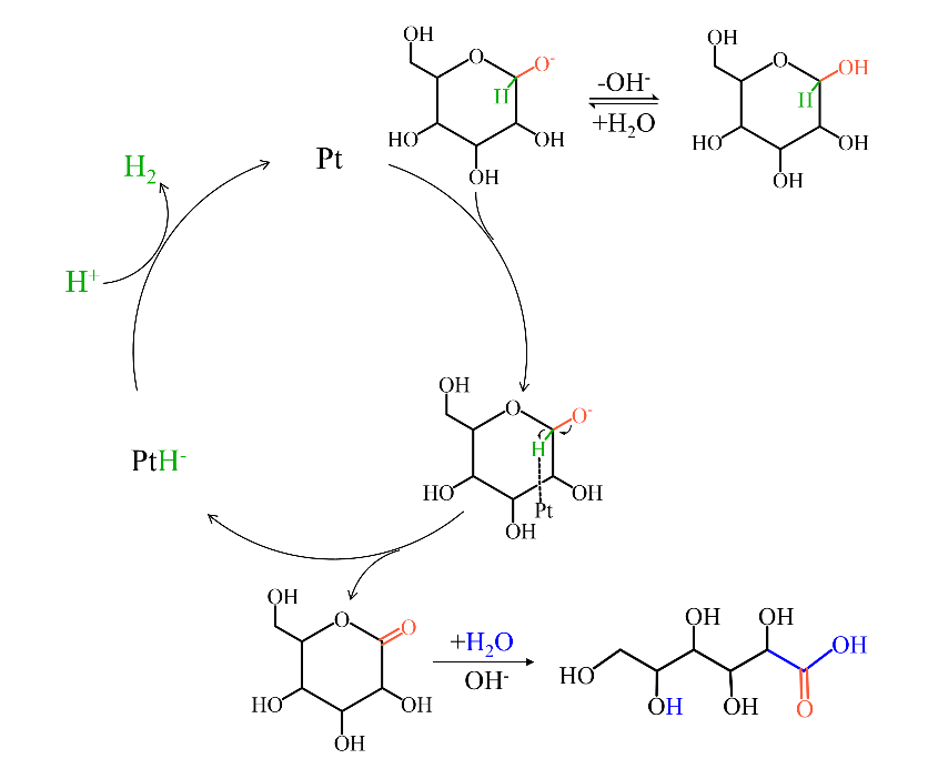 详细研究生物质催化转化的化学机理可以实现其更广泛的应用和可持续目标的实现,并指导催化剂的理性设计。近年来,葡萄糖多相催化法制葡萄糖酸得到广泛关注,以期替代现有的生物催化法。然而,对于葡萄糖的多相催化法,葡萄糖催化脱氢研究还非常有限,脱氢机理尚不完全清楚,这也直接限制了其实际应用。