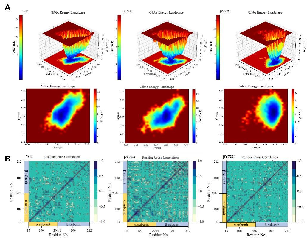 图4 自由能景观(FEL)和动态互相关矩阵(DCCM)分析