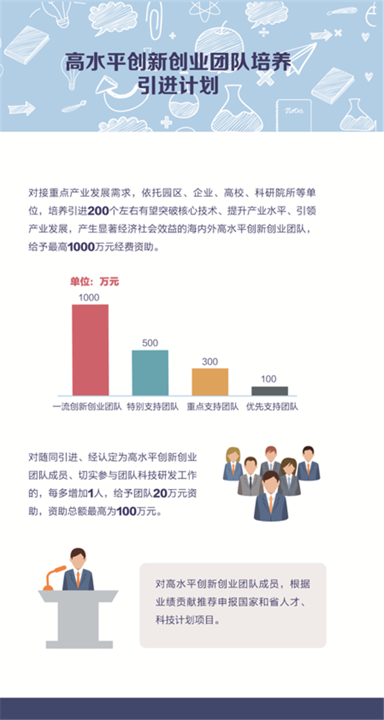 计划包括三个部分。一是实施高层次人才培养支持计划,瞄准处于世界科技前沿领域、能够坚持全职潜心研究、科研上取得重大成果的杰出人才,三年重点支持10名左右杰出人才、500名左右L J人才和500名左右人才。二是瞄准能够引领和带动辽宁全面振兴的人才,实施海内外高层次人才引进集聚计划,三年重点支持10名左右杰出人才、200名左右L J人才和200名左右人才。三是瞄准具有科研能力及创新潜力、获得国际国内较高学术成就的人才,实施高水平创新创业团队培养引进计划,三年重点支持200个左右高水平创新创业团队。辽宁将对新培养引进的“两院”院士给予500万元资助;对杰出人才给予300万元资助;对创业人才给予100万元资助;对人才给予50万元资助。