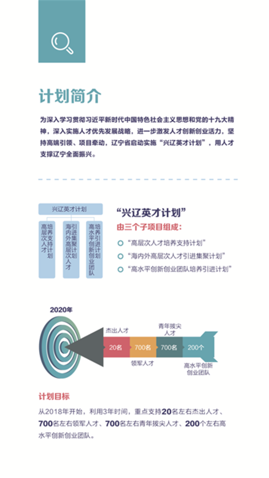 2018年4月16日,辽宁省公布《辽宁省人才服务全面振兴三年行动计划(2018—2020)》,同时启动实施重大人才工程“兴辽英才计划”,吸引高端高层次人才。